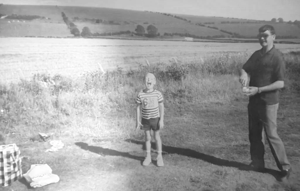 This snapshot could have been taken on any one of those outings. I have no idea. I don’t recognise the landscape or my clothing. But I can smell his tobacco after more than thirty years, and I remember now that he used to stir his tea with his finger as if it were a normal thing to do.